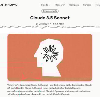 앤스로픽(Anthropic)은 최근(2024-06-20) 기존 모델보다 크게 개선된 클로드 3.5 소네트(Claude 3.5 Sonnet)를 공개하였습니다.
