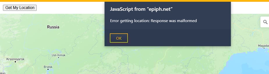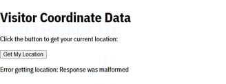 도움이 되도록 더 자세한 오류 메시지가 발생한 내용("Error getting location: Only secure origins are allowed (see: https://goo.gl/Y0ZkNV)")을 함께 적었습니다.